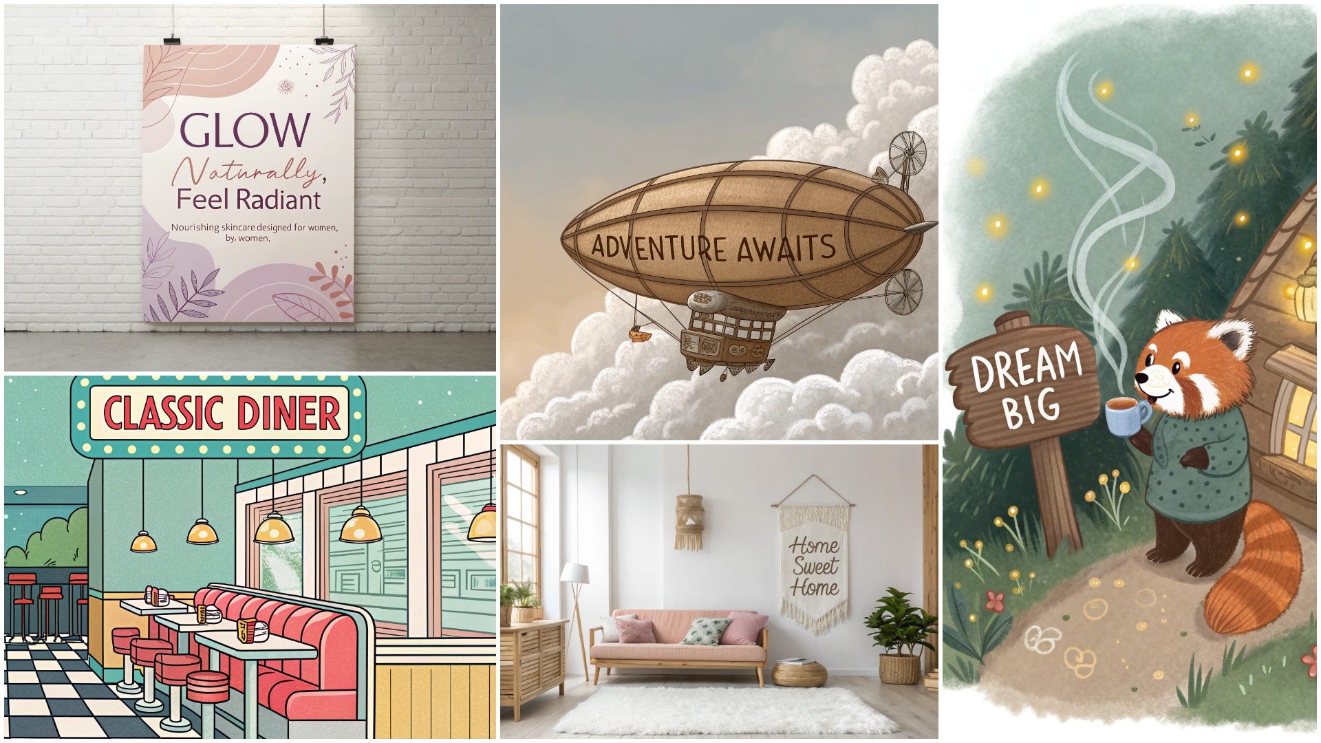 Recraft V3 excels in long text generation, capable of producing various fonts that are suitable for different visual styles. Check out my simple prompts for all the visuals above. I’m amazed by how the Recraft V3 image model chooses the right fonts for each visual!