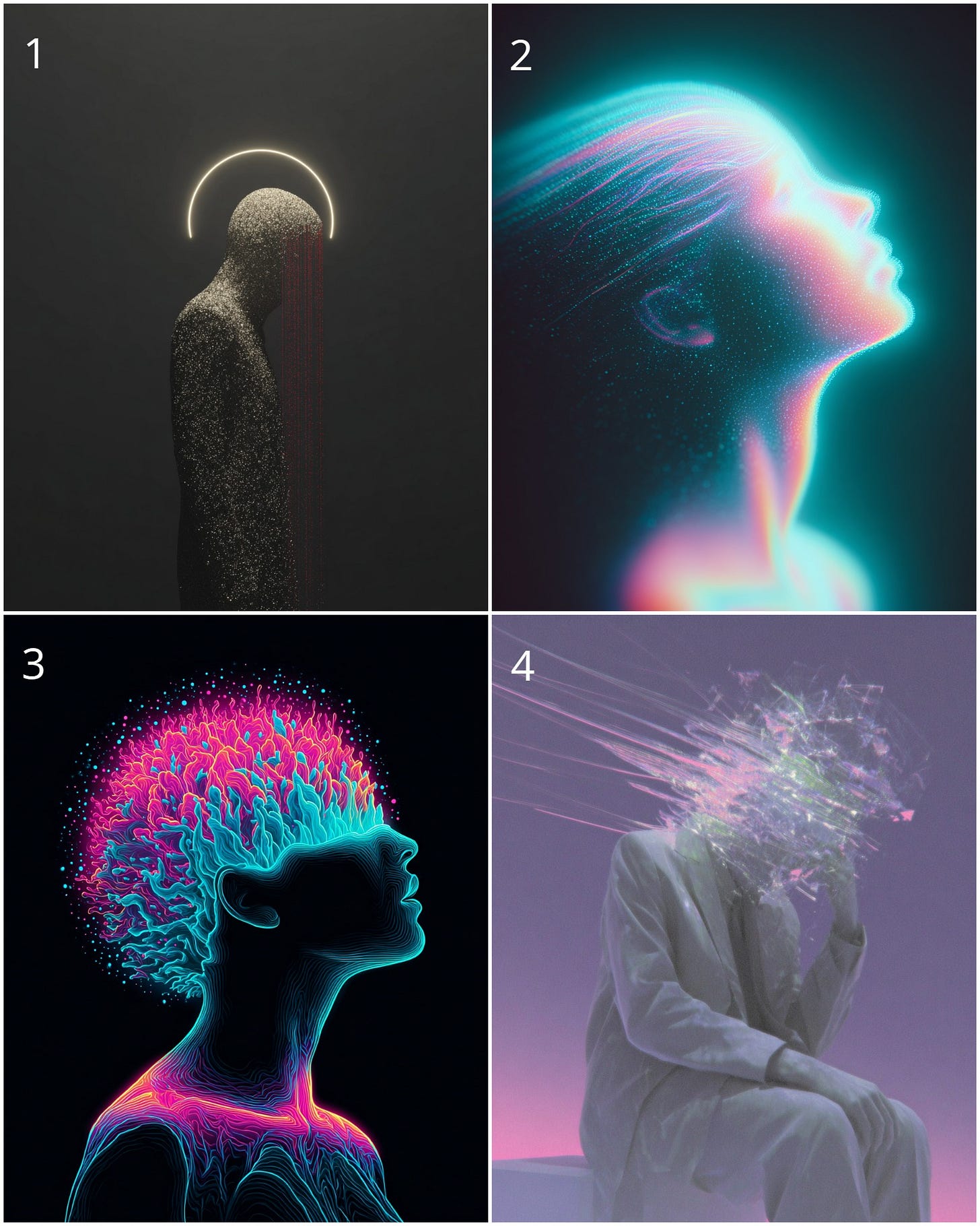 I’m starting a new series on X: AI art inspired by mental disorder names. Here are the prompts for the 4 images below 👇