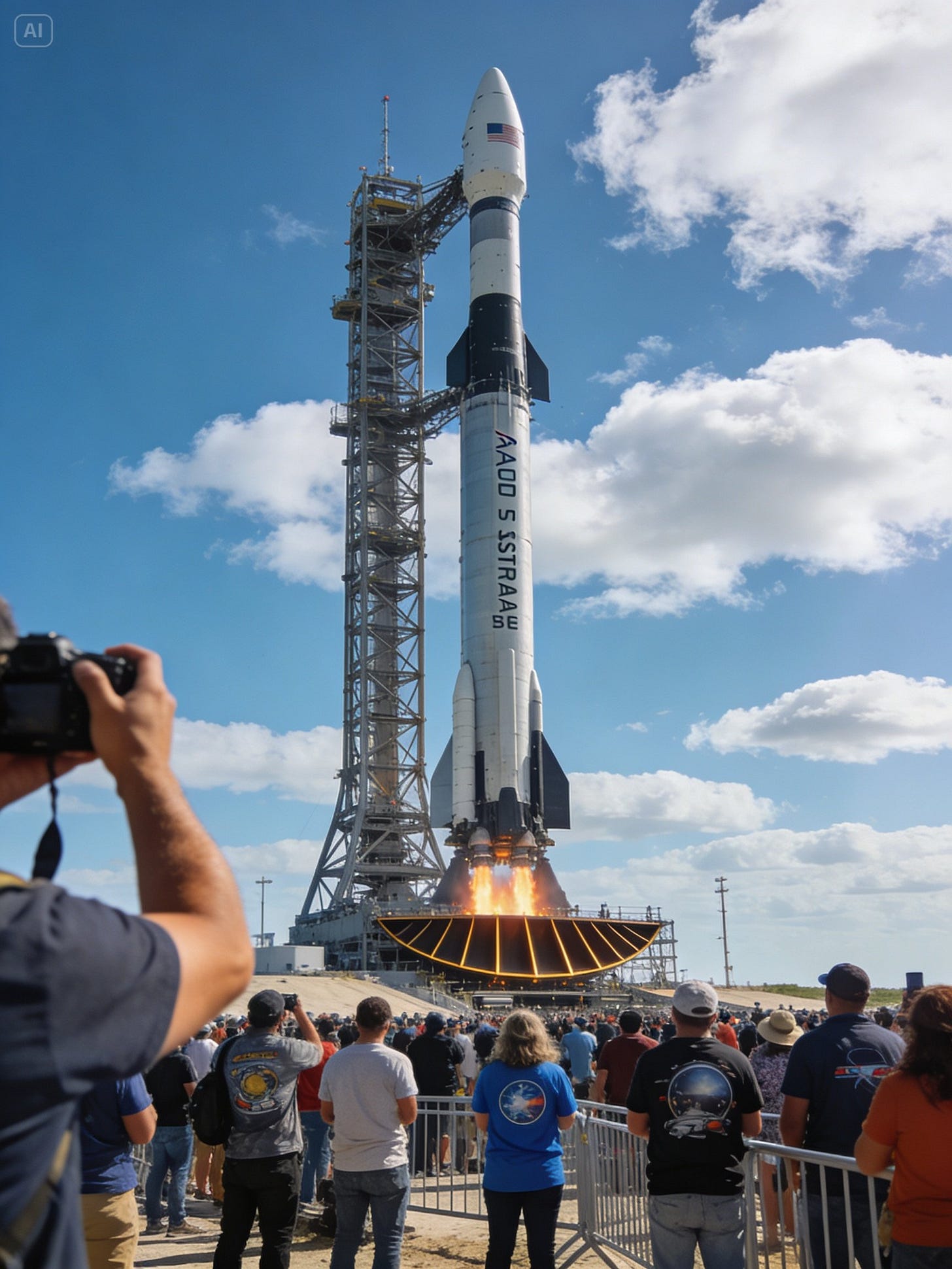 Prompt: Create a minimalist poster for a fictional 'Duolingo' x 'Starbucks' collaboration. Use the current Duolingo 'Duo' owl mascot and the latest Starbucks seasonal branding colors. Include the text 'Fuel Your Fluency' in a clean sans-serif font, ensuring the logo hierarchy is professionally balanced.Prompt: Generate a high-resolution photo of a crowd gathered at the most recent major space launch site (e.g., SpaceX Starbase or NASA Kennedy). Ensure the weather conditions and the specific rocket model on the pad match the actual current status of the mission as of today